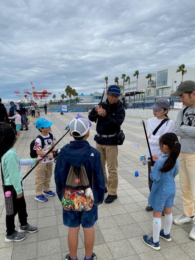 2025年10月22日(水) スタッフブログ 2025海洋スクール フィッシング体験! 10月19日(日)、六甲マリンパークでフィッシング体験を行いました。(株)フィッシングマックス様のご協力のもと、釣り協会や釣り具メーカから指導員を派遣していただき、丁寧に指導をしていただきありがとうございました。