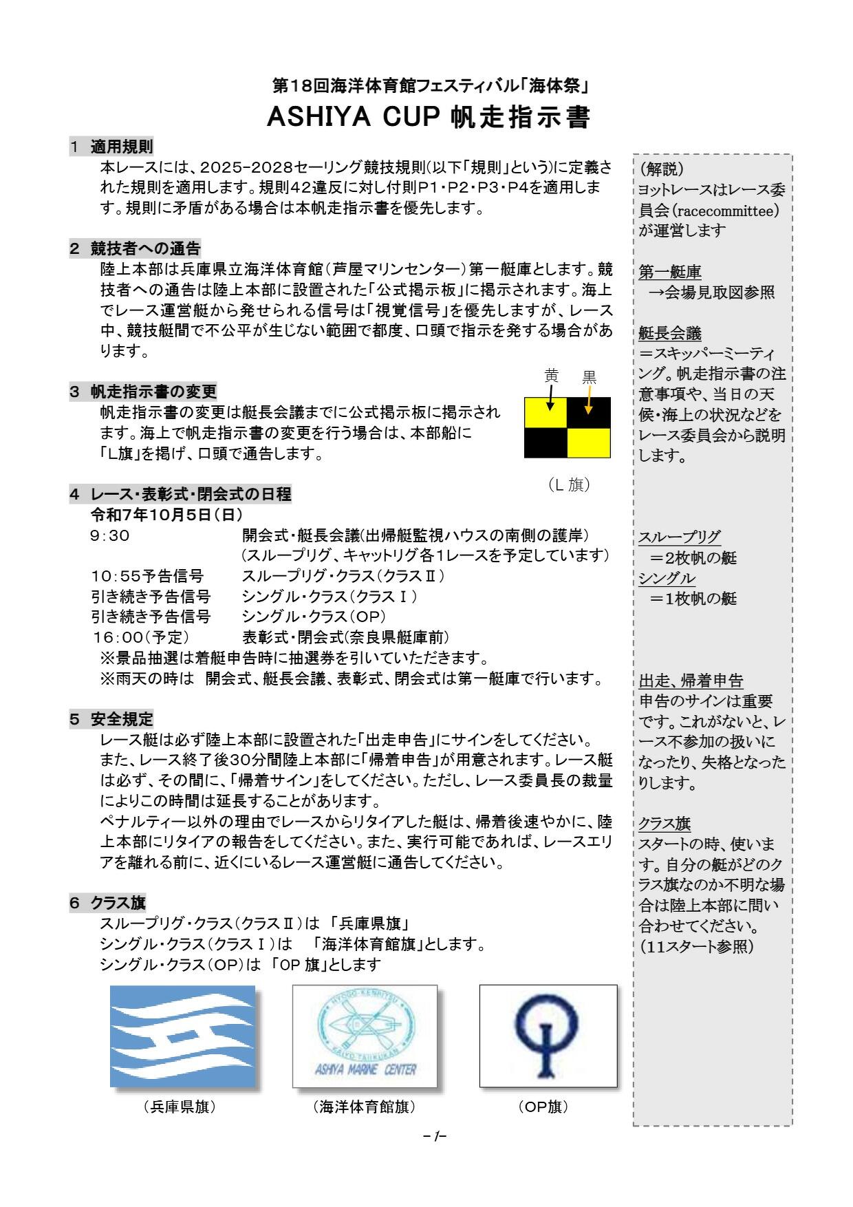 芦屋カップ 要項&帆走指示書 最新版アップしました20251002